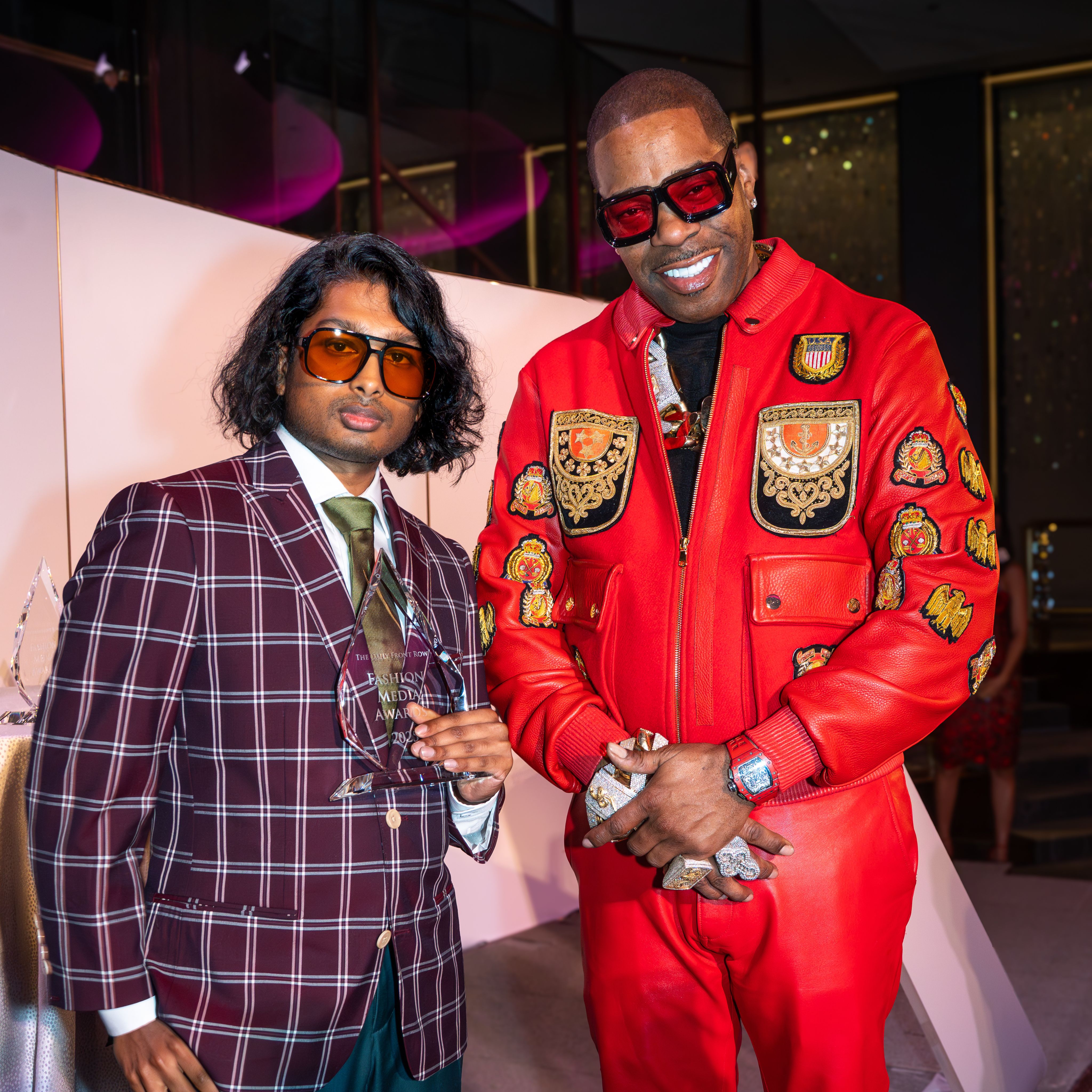 Busta Rhymes presented the Emerging Artist Award to Ashwin Gane at the Daily Front Row Fashion Media Awards during New York Fashion Week 2025.