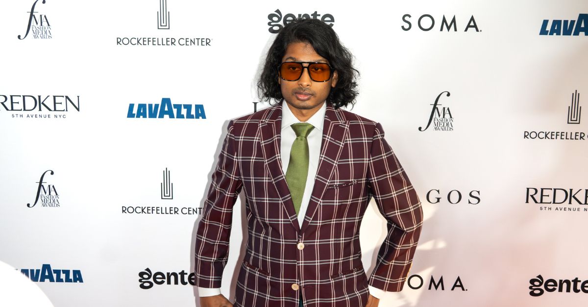 Ashwin Gane in Hive & Colony bespoke suit at the Rainbow Room during New York Fashion Week 2025.